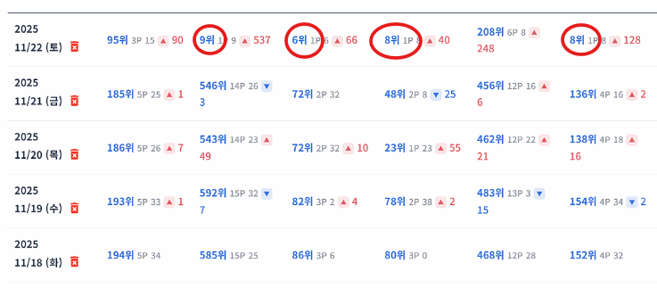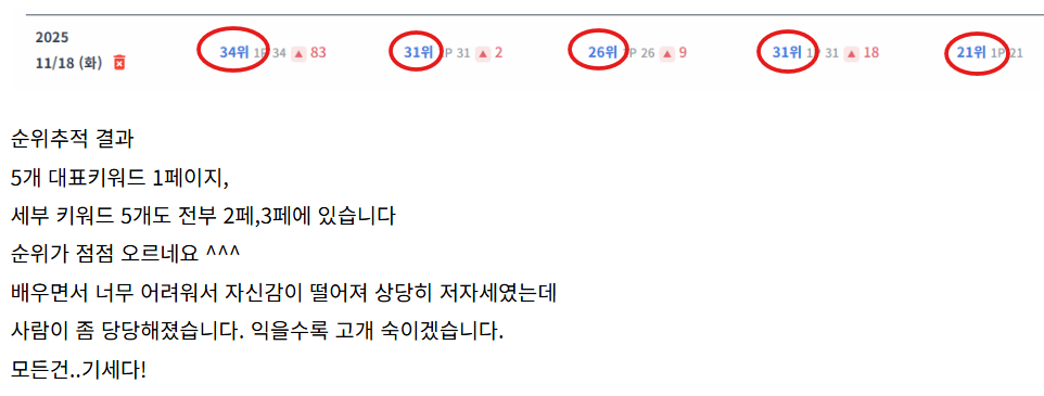 하루만에 6개 키워드가 1페이지로 갔습니다.