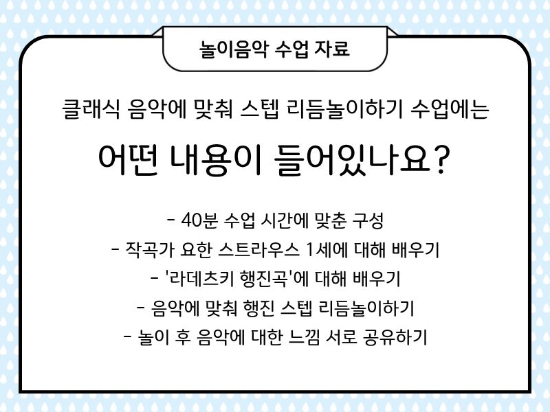 그냥 감상하는 것이 아니라 스텝 리듬놀이를 하면서 말이죠!