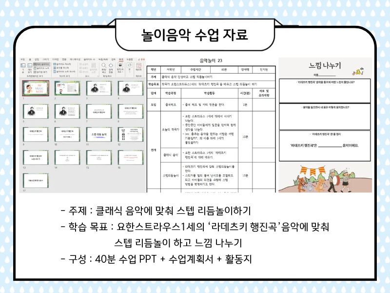 '라데츠키 행진곡' 유튜브 영상을 찾아 PPT 안에 링크 걸어놓았구요.