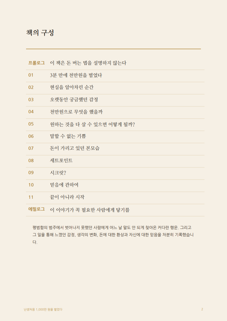 본 전자책은 개인적 경험을 바탕으로 쓴 에세이입니다.