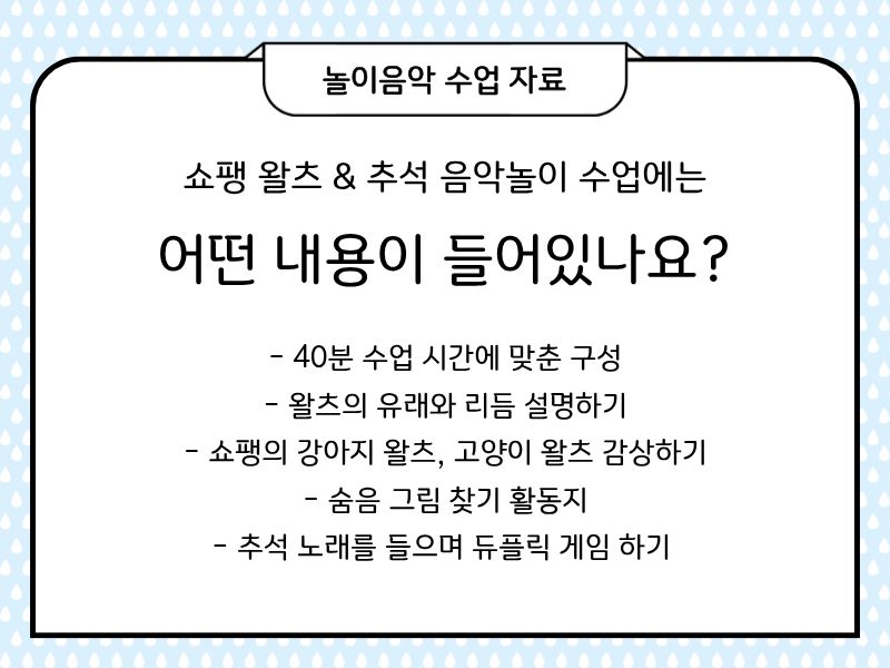 오늘은 초등학교 놀이음악 수업에서 활용할 수 있는 자료를 가지고 왔습니다.
