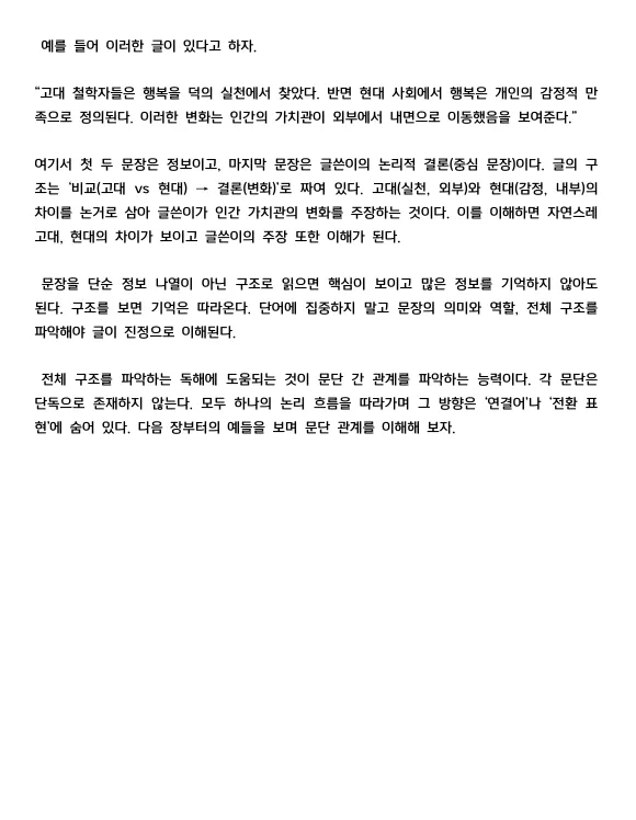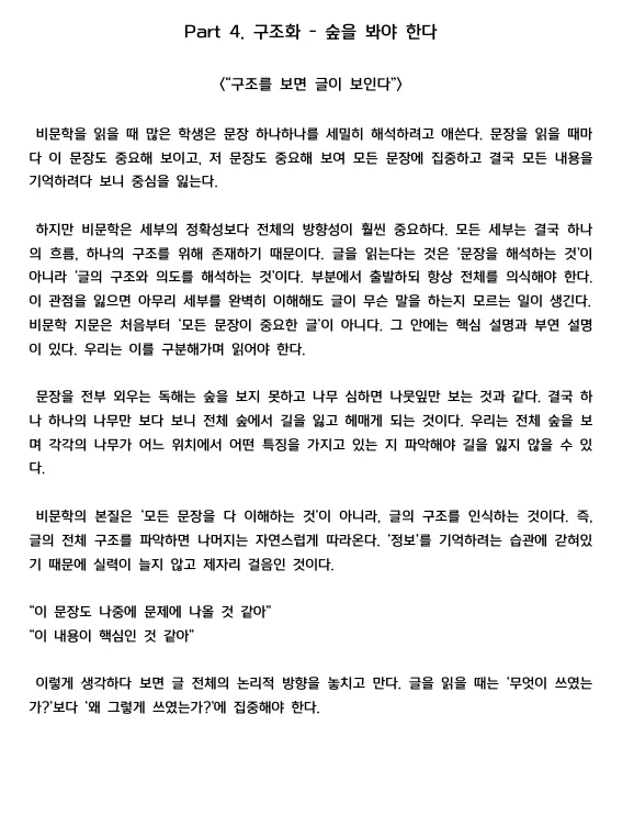 지문을 ‘무의식적으로’ 구조화하게 됩니다.