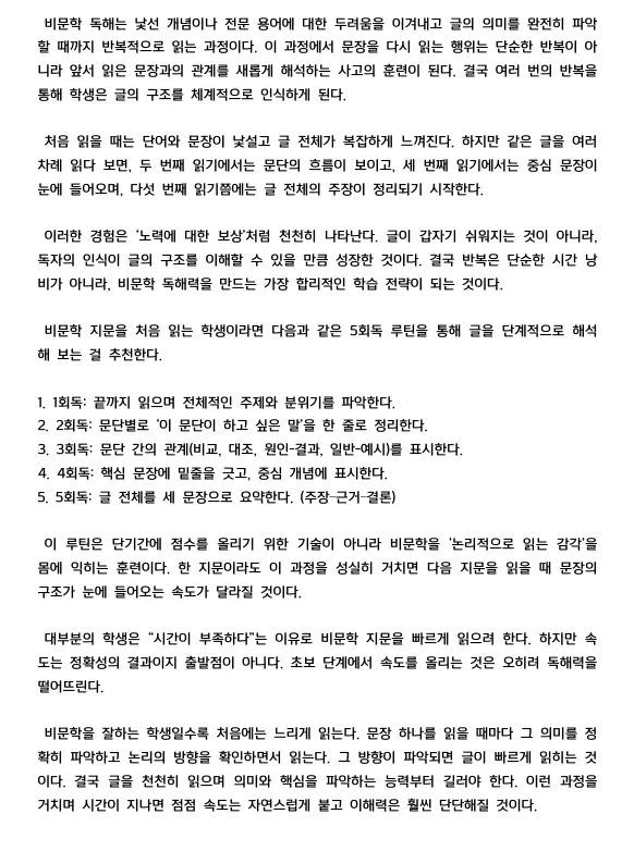 비문학을 잘하는 학생들도 처음엔 누구보다 느리게 읽던 시절이 있습니다.