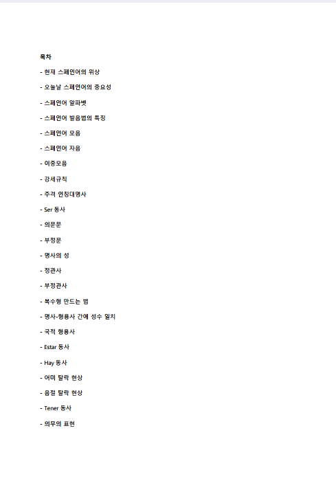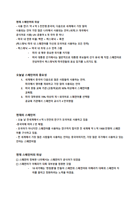 총 41장 분량으로 구성되어 있으며, 현재 스페인어의 위상부터 다양한 문법 기초들이 정리되어 있습니다.