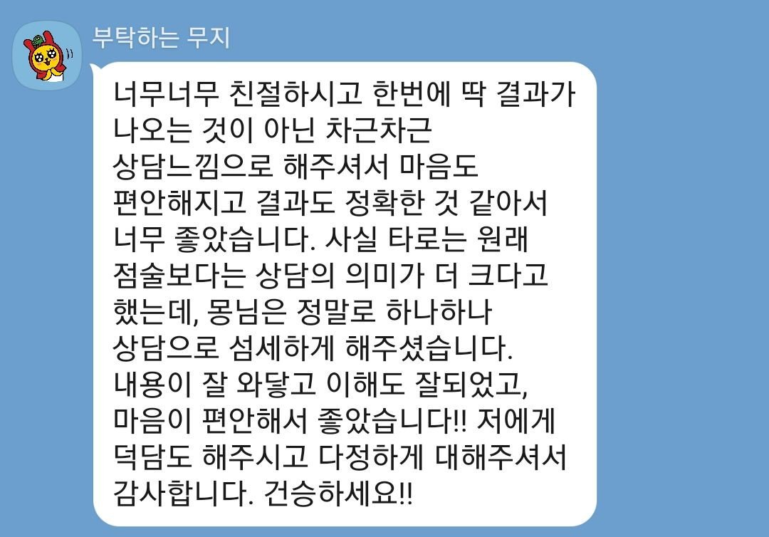 저는 정회도, 타로묘묘 두 분의 논술형 테스트를 통과한 검증받은 타로 리더입니다.