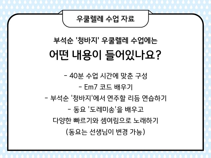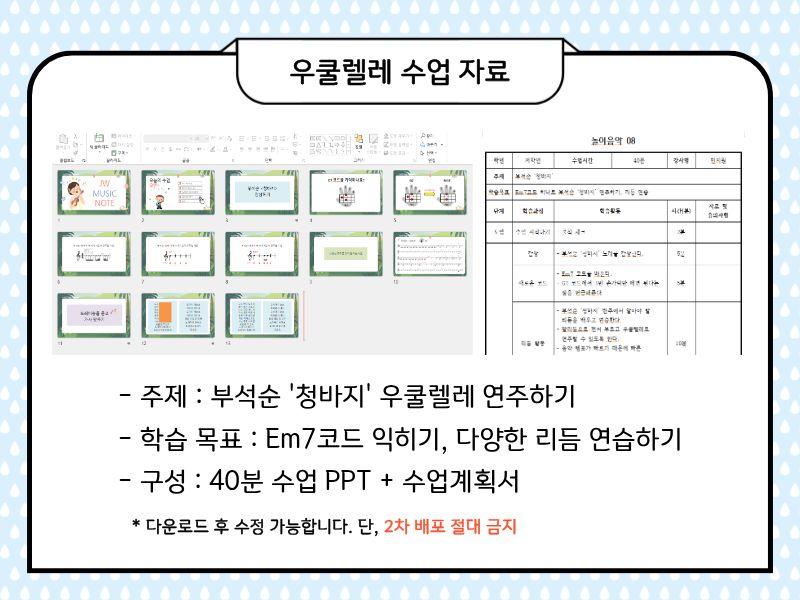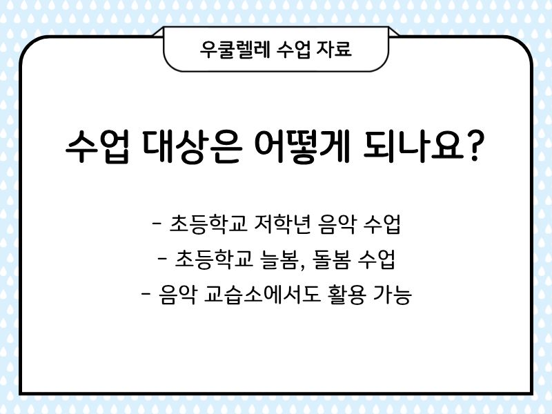 오늘은 초등학교 우쿨렐레 수업에서 활용할 수 있는 자료를 가지고 왔습니다.